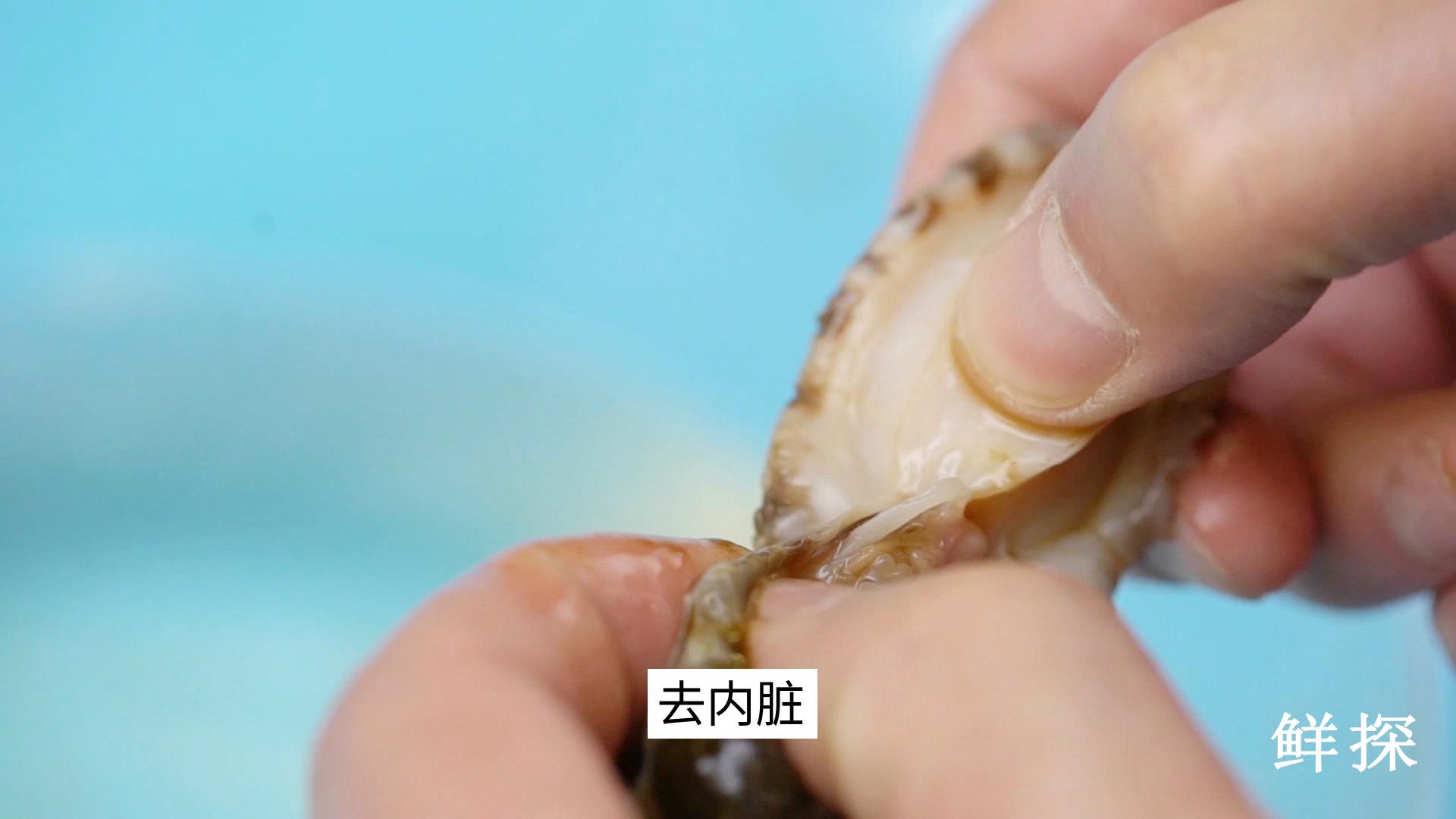 Step 2 拿走鲍鱼肉外围的一小撮内脏组织(偏灰黑色),这一部分不能吃,得丢掉