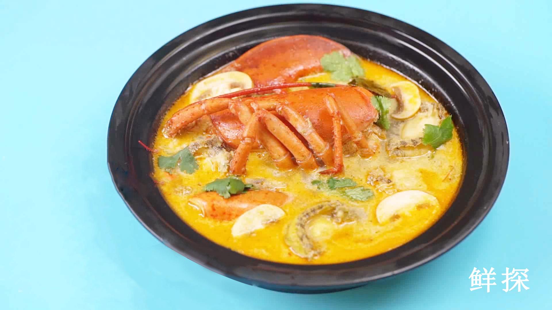 ② 热油锅,放葱片和小葱段煎香,加入1000ml清水和适量冬阴功汤底煮沸,加入龙虾块和鲍鱼,煮熟即可